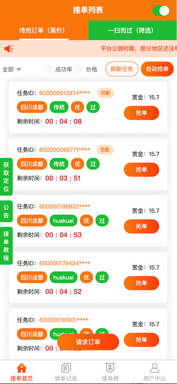 類似“碼幫平臺/FZ輔助/碼力平臺/閃電接單/蜻蜓輔助/雛菊輔助”,第三方微信輔助注冊任務(wù)管理平臺——“蜜蜂”任務(wù)平臺管理系統(tǒng),幫助有大量微信注冊需求的商家和想要0元投入月入過萬的兼職人員搭建連通的橋梁。系統(tǒng)由用戶端H5/APP、商家端H5/APP、地推商戶端H5、商家端PC、平臺端PC架構(gòu)而成,支持用戶隨時(shí)提現(xiàn),支付寶實(shí)時(shí)到賬,商家端一鍵掃碼下單,方便快捷;系統(tǒng)支撐商家每天10萬+的訂單下發(fā)和用戶隨時(shí)隨地?fù)寙危鰡危嵢蚪穑岈F(xiàn)等更多功能。。。